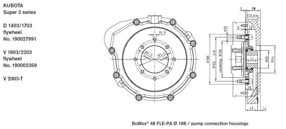 BoWex 48 FLE-PA flange Ø188 DO=Ø165 Z=6XØ13 outer centering Ø136G8 Flange/element